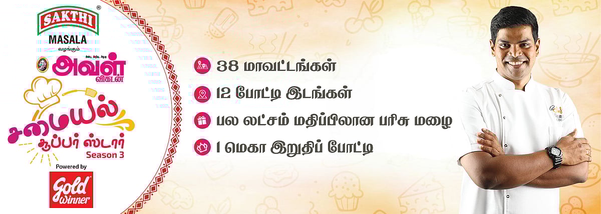 - - நேரடி சமையல் போட்டியின் மூலம் 3 பேர் தேர்ந்தெடுக்கப்படுவார்கள் அவர்கள், சென்னையில் நடைபெறும் இறுதிப் போட்டியில் பங்கேற்பார்கள்.